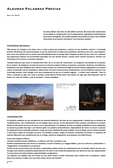 Texts Some Preliminary Words Smiljan Radić How to Carry the World on One's Back Conversation between Smiljan Radić and Christian Kerez